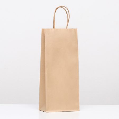 Пакет крафт под бутылку, Крафт, 14×8×32 см