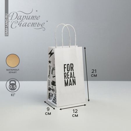 Главная » Подарки,сувениры,цветы Пакет подарочный крафт, упаковка, «For real man», 12 х 21 х 9 см Просмотров 9 Пакет подарочный крафт, упаковка, «For real man», 12 х 21 х 9 см Дарите Счастье
