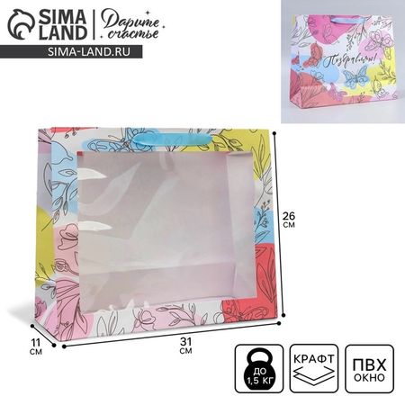 Главная » Подарки,сувениры,цветы Пакет подарочный крафтовый с пластиковым окном, упаковка, «Поздравляю», 31 х 26 х 10 см Просмотров 9 Пакет подарочный крафтовый с пластиковым окном, упаковка, «Поздравляю», 31 х 26 х 10 см Дарите Счастье