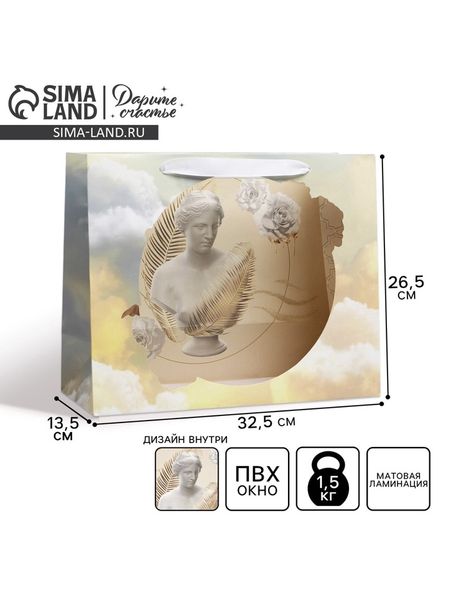 Главная » Подарки,сувениры,цветы Пакет подарочный ламинированный с пластиковым окном, упаковка, «Нимфа», 32.5 х 26.5 х 13.5 см Просмотров 11 Пакет подарочный ламинированный с пластиковым окном, упаковка, «Нимфа», 32.5 х 26.5 х 13.5 см Дарите Счастье