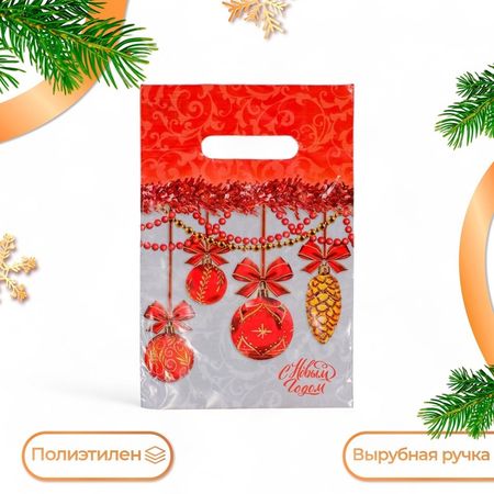 Пакет подарочный новогодний «Бантики», полиэтиленовый с вырубной ручкой, 20×30 см