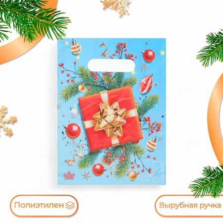 Пакет подарочный новогодний «Красный подарок», полиэтиленовый с вырубной ручкой, 19×25 см