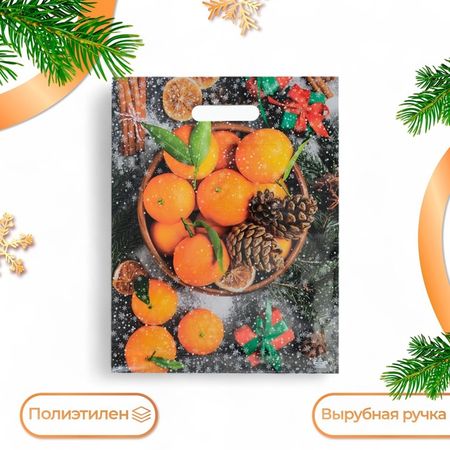 Пакет подарочный новогодний «Мандарины», полиэтиленовый с вырубной ручкой, л 40×31 см