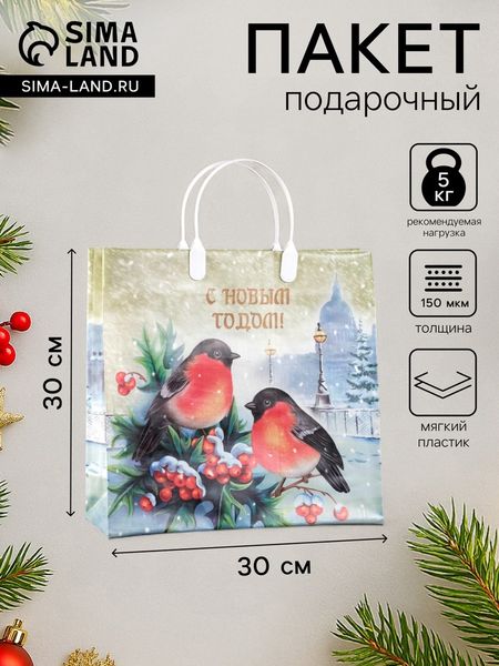 Пакет подарочный новогодний «Пернатые друзья», мягкий пластик, 30×30 см