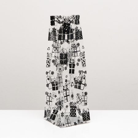 Прозрачный пакет с жёстким дном, украшенный рисунком подарочных коробок — достаточно прочный, экономичный и стильный. Его используют для упаковки сладостей, фруктов, а так же косметических наборов и многого другого. Идеальный выбор для оформления новогодних подарков. Как вариант, упаковку можно перевязать бантиком.