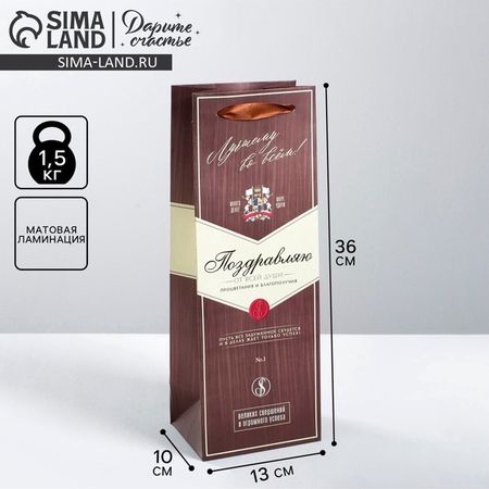 Главная » Подарки,сувениры,цветы Пакет подарочный под бутылку, упаковка, «Поздравляю», 35 х 13 х 10 см Просмотров 10 Пакет подарочный под бутылку, упаковка, «Поздравляю», 35 х 13 х 10 см Дарите Счастье
