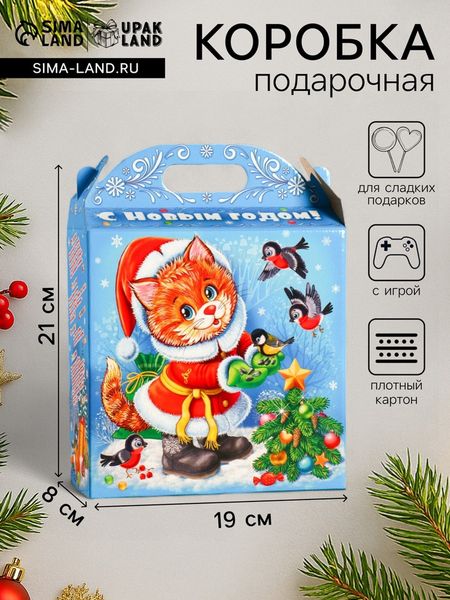Упаковка для подарка является неотъемлемым атрибутом любого подарка. Подобранная со вкусом упаковка придаст подарку еще большую ценность. Материал изделия — картон. Коробка складная прекрасно подойдет для оформления подарка на — Новый год. Наполнить можно конфетами и различными новогодними сувенирами.