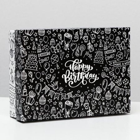 Подари радость в стильной упаковке! Праздничная сборная коробка «С днём рождения» – это универсальное решение для упаковки подарков. Черно-белый дизайн сделает её элегантным акцентом на вашем празднике.Идеальный размер: Средние габариты (21×15×5.7 см) подходят для множества подарков – от сувениров до сладостей. Будь то пряники или печенье, всё отлично разместится внутри.Практичная конструкция: Коробка складная и имеет разъемную крышку, что облегчает её сборку и использование. Легкая, но прочная благодаря плотному картону (260 г/м²), она удобно собирается даже в последний момент.Универсальный декор: Стильный черно-белый рисунок делает упаковку уместной как для мужчин, так и для женщин. Разноцветная отделка подчеркивает праздничную тематику – всегда актуально для дня рождения.Отсутствие окон: Закрытый дизайн сохраняет интригу подарка. Крышка-дно надёжно удерживает содержимое, предотвращая случайное открытие.Создавай настроение: Каждый подарок заслуживает особой упаковки, и эта коробка – отличный способ сделать ваш сюрприз уникальным. Компактная и стильная, она подчеркнёт ваше внимание к деталям и создаст атмосферу праздника.