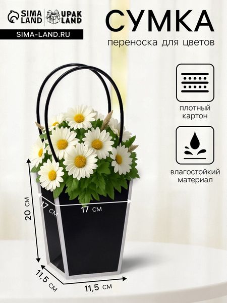 Сумка для цветов чёрная влагостойкая, 17×17 — 11.5×11.5 — 20 см