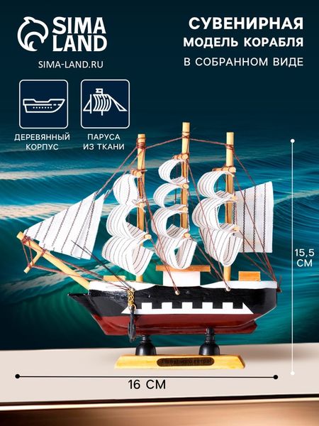 Изысканная сувенирная модель корабля с черными бортами и полосатыми белыми парусами станет элегантным дополнением к вашему интерьеру. Маленький, но впечатляющий корабль с тремя мачтами вызовет восторг у коллекционеров и станет отличным подарком на День защитника Отечества.Преимущества моделиАтмосфера морских путешествий: эта модель напомнит о приключениях и дальних странствиях.Отличное качество материалов: использованы дерево и текстиль для создания прочной и эстетичной модели.Компактный размер: длина модели до 26 см, что позволяет разместить её в любой части дома.Идеальный подарокТакой корабль станет идеальным сувениром для настоящего моряка в душе. Он подчеркивает вкус и интересы своего владельца, создавая уют и атмосферу на любой полке. Оригинальный дизайн и многочисленные детали делают эту модель незаменимой частью любой коллекции.Подарите кусочек моря и истории вместе с этой уникальной моделью корабля. Вдохновение и очарование подготовки к новым приключениям станут частью вашего дома.