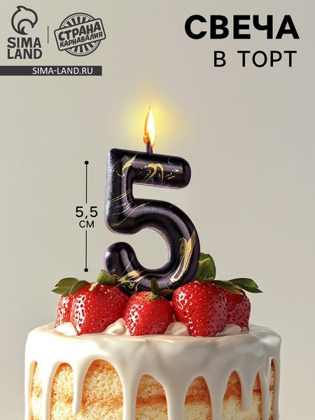 Свеча в торт «Черный мрамор», цифра 5, 5.5 см