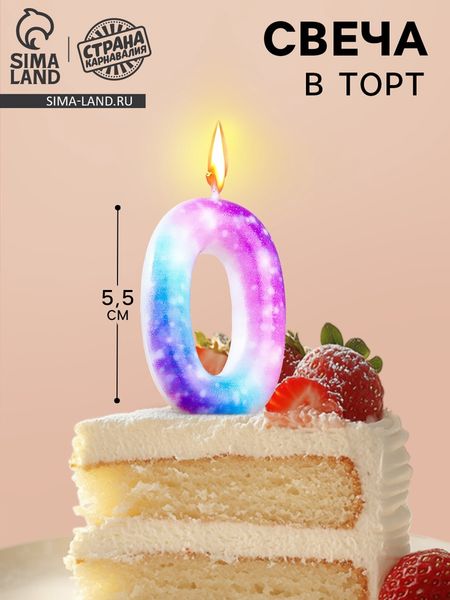 Свеча в торт на шпажке «Галактика», цифра 0, 5.5 см