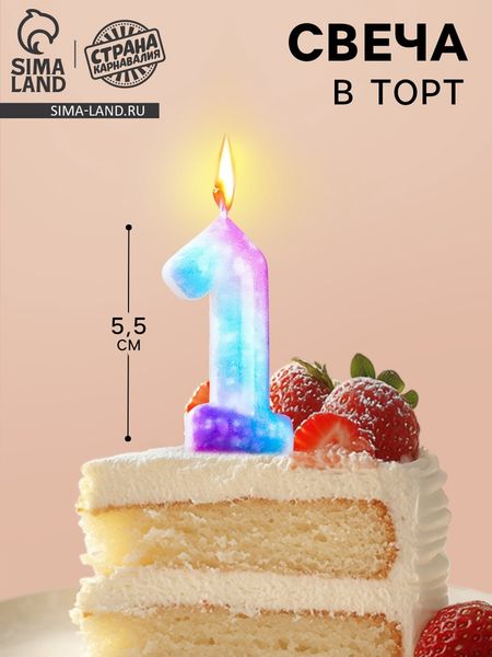Свеча в торт на шпажке «Галактика», цифра 1, 5.5 см