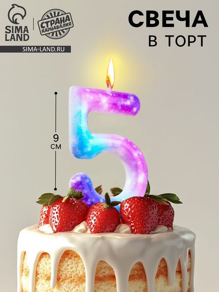Свеча в торт на шпажке «Галактика», цифра 5, 9 см, ГИГАНТ