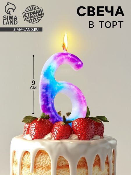 Свеча в торт на шпажке «Галактика», цифра 6, 9 см, ГИГАНТ