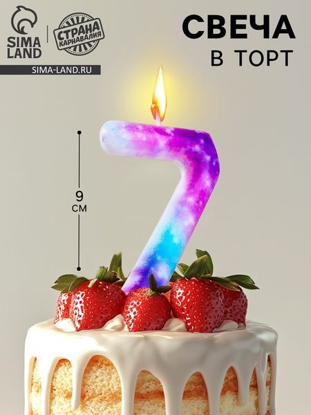 Свеча в торт на шпажке «Галактика», цифра 7, 9 см, ГИГАНТ