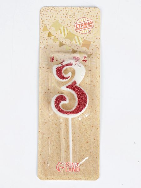 Свеча в торт на шпажке «Рубиновая коллекция», цифра 3, 5.2 см, рубиновая