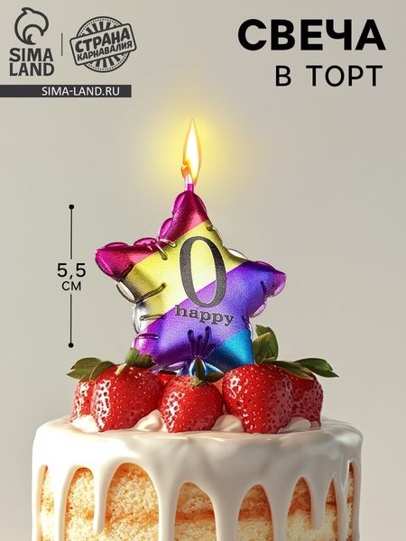 Свеча в торт «Воздушный шарик. Звезда», цифра 0, 5.5 см, разноцветная