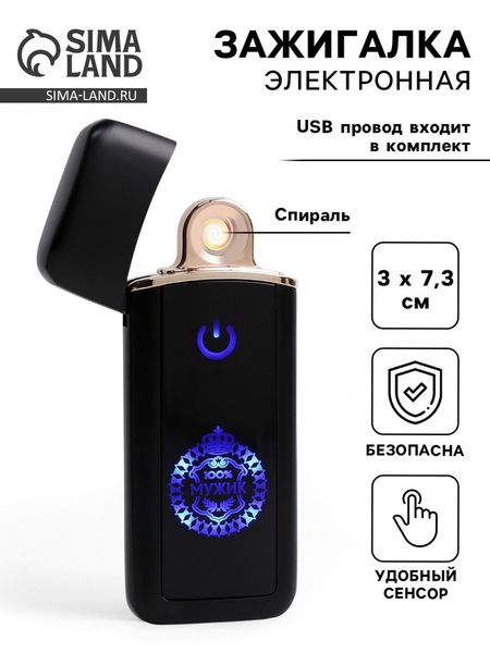 Зажигалка электронная «100% Мужик», USB, спираль, 3×7.3 см
