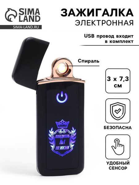 Зажигалка электронная «Победитель №1 по жизни», USB, спираль, 3×7.3 см