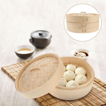 1 набор бамбуковых корзин для пароварки для китайской кухни, пароварка с крышкой, кухонный инструмент для приготовления пищи, бамбуковая корзина для пароварки