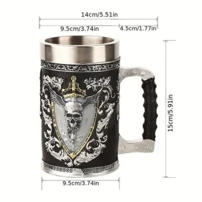 1 шт., Череп, Ангел, Пивная чашка, Рельеф из смолы, Скелет, Ангел, Меч, Кружка из нержавеющей стали, Внутренняя чашка для воды, Кофейная чашка, Креативный мужской бокал для вина, подходит для семьи