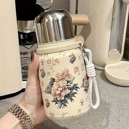 1 шт. Милая цветочная термобутылка из нержавеющей стали с крышкой — Непротекаемая, портативная кружка для путешествий на открытом воздухе, кемпинга, пеших походов — Дорожная бутылка для воды Peony-400ml