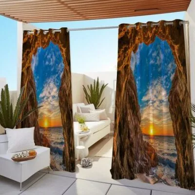 1 шт. наружные водонепроницаемые масляные шторы, современные солнцезащитные шторы с принтом в виде естественного пейзажа, заката, пляжа, океана, для гостиной W138X214H(cm) 1PCGrommet top