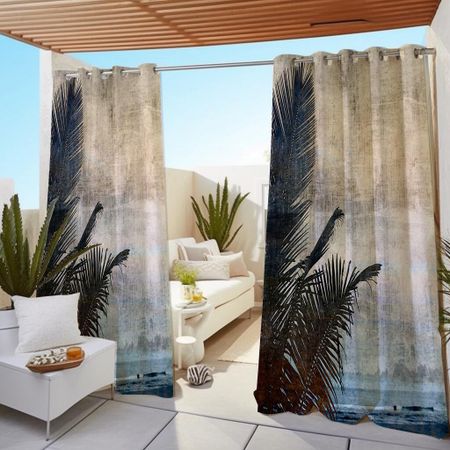 1 шт. наружные водонепроницаемые шторы с принтом «Отпускной пейзаж», «Облака и море», современный стиль, светофильтрующий полиэстер с люверсами, пейзаж W138X214H(cm) 1PCGrommet top