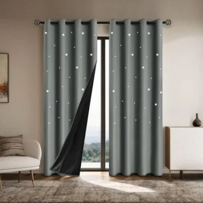 1 шт. Романтичные шторы Hollow Star Blackout, полностью блокирующие свет текстурированные оконные шторы для спальни, гостиной 132X274CM 1PCGrommet Top темно серый