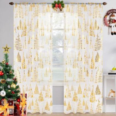 1 шт. Волшебные шторы с принтом рождественской елки с золотой фольгой для домашнего декора, шторы с карманами для гостиной, спальни 100X250CM 1PCRod Pocket