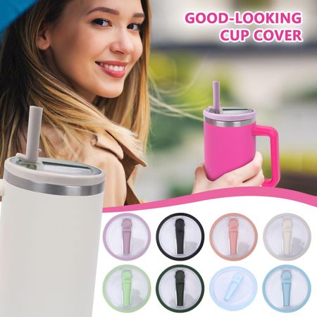 1 упаковка 30 унций складной крышки для стакана с трубочкой с высоким внешним видом, герметичное уплотнение, пластиковая крышка, переносная ручка, крышка для автомобильного стакана One Size