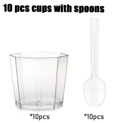 10 шт. Прозрачные одноразовые пластиковые десертные стаканчики с набором ложек, трапециевидные стаканчики для мусса, мороженого с желе и пудингом Pack of 10