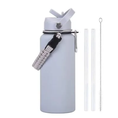 1000Ml Large Capacity Stainless Steel Thermos Cup With Braided Rope Straw Water Cup Men S And Women S Outdoor Sports Thermal Insulation Kettle 1L светло-серый