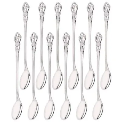 12 шт. цвета радуги, кофейная, чайная ложка для перемешивания, длинная ручка, десертные ложки для мороженого, роскошная посуда из нержавеющей стали, кухонные принадлежности China серебряный
