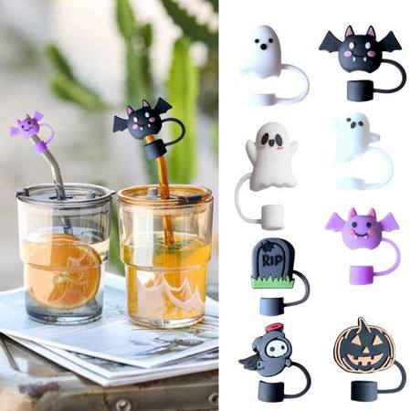 12 шт. силиконовая крышка для соломинки на Хэллоуин, многоразовая крышка для соломинки, брызгозащитная крышка для 10-миллиметровых соломинок, экологически чистые крышки для питьевых наконечников