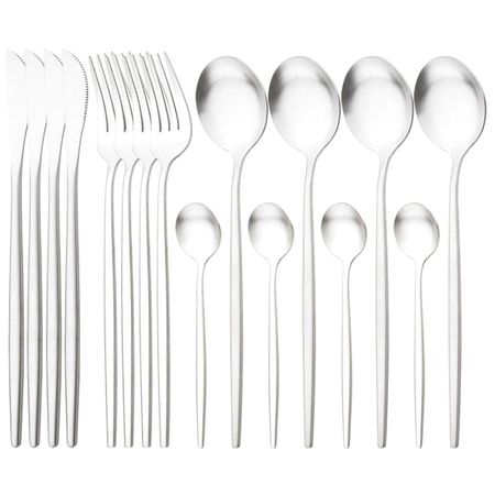 Главная » Все для дома 16 шт. матовый набор посуды, обеденный нож, вилка, чайная ложка, столовые приборы, столовые приборы в стиле вестерн, столовые приборы из нержавеющей стали, кухонный набор столового серебра серебряный Просмотров 13 JANKNG HOME