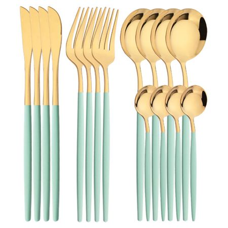Главная » Все для дома 16 шт., мятно-золотой набор столовых приборов, высококачественная посуда из нержавеющей стали, нож, вилка, кофейная ложка, столовые приборы, столовое серебро в стиле вестерн Kiechen серебряный Просмотров 8 DC-Home-2