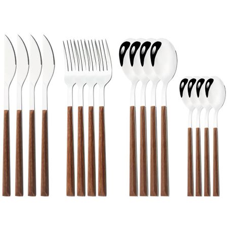 16 шт., набор столовых приборов белого цвета из нержавеющей стали, нож, вилка, ложка, серебро, имитация деревянной ручки, столовая посуда, зажим, посуда в стиле вестерн коричневый