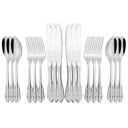 Главная » Все для дома 18 шт. столовая посуда, винтажная роскошная западная серебряная нержавеющая сталь, набор столовых приборов, обеденный нож, вилка, ложка, чайные ложки, набор столовой посуды серебряный Просмотров 15 Zoseil Home