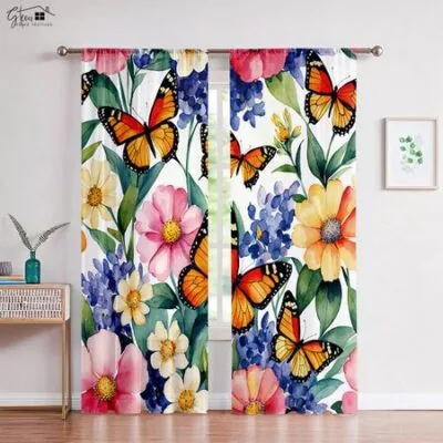 2-х компонентные деревянные шторы с принтом в виде цветка глицинии и бабочек в пасторальном стиле для спальни, гостиной, кабинета, кухни W50xH130(CM)x2PCSRod pocket