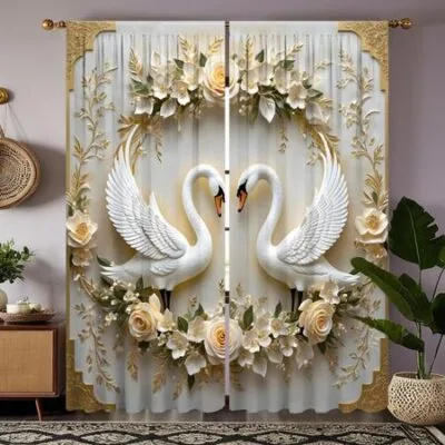 2-х компонентный HD цифровой белый галстук красивый цветок лебедь занавеска для украшения дома стиль украшения гостиной спальни носить штангу занавеска W52H95inchW132H241cm
