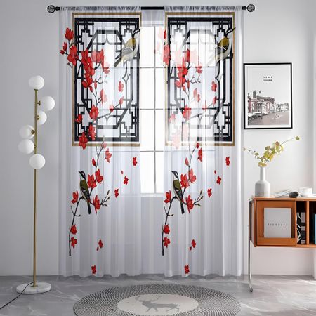 2-х компонентный HD цифровой старинный стиль красный крыло сливовый рисунок напечатанный оконный вуаль домашний декор стиль декоративная гостиная спальня R W52H95inchW132H241cm