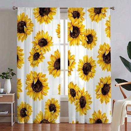 2-х панельная черная занавеска с принтом подсолнухов, занавеска с карманом на штанге для спальни, офиса, кухни, гостиной, кабинета, домашнего декора W65X60H(cm)X2PcsGrommet Top