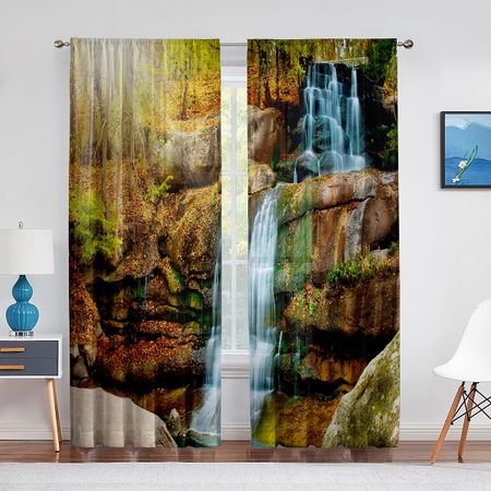 2 панели Водопад с темой природного ландшафта Зеленый лес Речные шторы для гостиной Спальни Шторы Жалюзи Оконная драпировка 100W130H(CM)40x51inGrommet Top