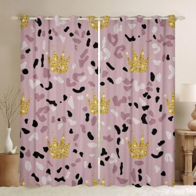 2-панельная розовая занавеска «Корона принцессы» для спальни для девочек, туалетная комната, люверсы для окон, верхние шторы, шторы со светящимся принтом 100W130H(CM)40x51inGrommet Top
