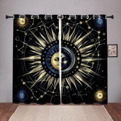 2-панельные шторы в стиле ретро с изображением солнца и луны, затемняющие оконные шторы в готическом стиле с изображением мандалы для гостиной, спальни, окна 100W130H(CM)40x51inGrommet Top