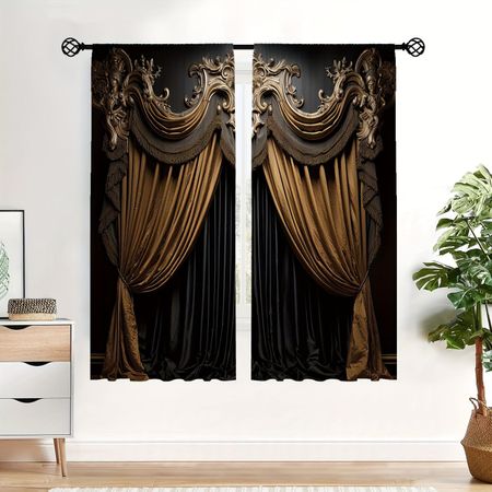2 шт. 3D-печатные шторы в европейском стиле — светофильтрация, три варианта подвесных конструкций для гостиной, спальни, офиса, домашнего декора W50H130(CM)x2pcsGrommet Top