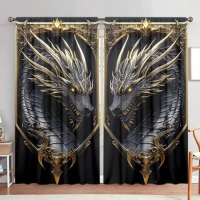 2 шт. 3D-шторы с принтом «Властный черный дракон» для домашнего декора — оконные шторы с карманами для спальни, офиса, кухни 52.5cmX116cm X 2pcs