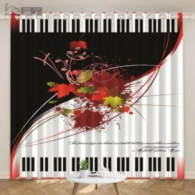 2 шт. Черно-белая занавеска для клавиш пианино, занавеска для студии фортепиано, окно детской спальни, люверс для верхнего кармашка для штанги 100W130H(CM)40x51inGrommet Top